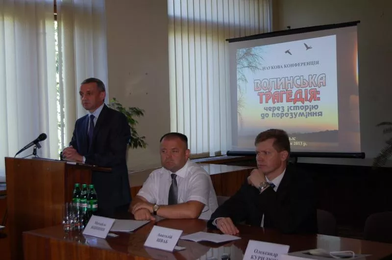 Відкрив захід декан істфаку Анатолій Шваб. Із вітальним словом виступив заступник голови Волинської ОДА Олександр Курилюк, який відзначив, що облдержадміністрацією вже чимало зроблено для вшанування пам’яті українців, які загинули в Польщі та на Волині, триває облаштування місць поховання українців на території Польщі, відкриття пам’ятних знаків, підтримуються ініціативи громадських організацій, буде організовано пам’ятну академію-реквієм тощо. «Ми теж у діалозі, в т. ч. з нашими польськими друзями, партнерами, сусідами», – наголосив Олександр Іванович, а також закликав: аналіз подій 70-річної давнини повинен мати передусім християнську позицію.