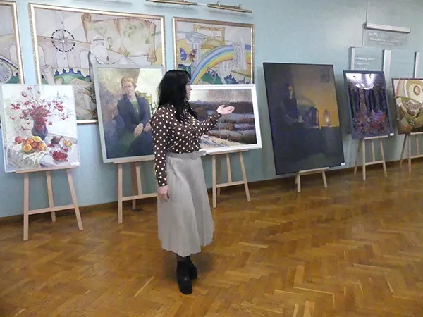 Про виставку та техніку виконання робіт (а це і олійний живопис, і розпис на тканині й ін. – лише невелика частина технік, якими володіють студенти) повідала доцент Ольга Каленюк: «“Коло Лесі” – це всеохопне коло тих її почуттів, переживань, досягнень, багатогранності її натури, глибини її душі. І саме всі ці риси передані у цих живописних роботах і творах декоративно-прикладного характеру».