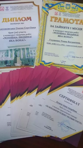 22 грудня 2017 року на базі факультету психології та соціології Східноєвропейського національного університету імені Лесі Українки відбулося нагородження учасників конкурсу творчих робіт старшокласників «УСПІШНА ЛЮДИНА! ЯКА ВОНА?» під час науково-практичного семінару «Психологія успіху особистості».