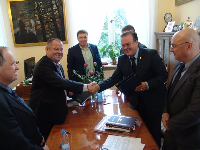Окрім того, представники нашого навчального закладу були запрошені до Поморської академії у м. Слупськ. Там під час робочої зустрічі ректор Ігор Коцан і ректор академії Роман Дрозд підписали Договір, який передбачає співпрацю між навчальними закладами щодо організації спільних наукових досліджень; обміну між викладачами та студентами; проведення спільних наукових конференцій і семінарів; організації спільних культурно-масових заходів (першим кроком у цьому напрямі буде творча зустріч студентів обох вишів, яка відбудеться 27 червня в СНУ імені Лесі Українки). За результатами робочої зустрічі також домовлено про відкриття у 2015/2016 н. р. на базі історичного факультету Східноєвропейського національного університету імені Лесі Українки Інституту національної безпеки.