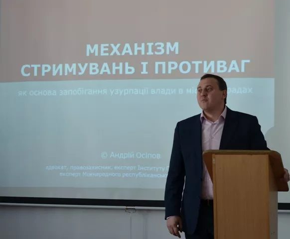 Як трансформувати набуті знання у практичну площину, показував студентам колишній випускник факультету, а зараз успішний адвокат та громадський діяч Андрій Осіпов. Механізми стримування і противаг від узурпації влади в місцевих органах влади, а також реальні важелі впливу громади на ці механізми – основні акценти його виступу.