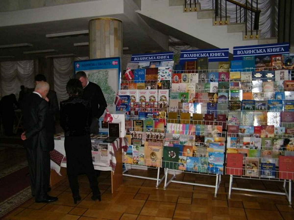 Окрім того, у холі театру працювала виставка «Волинь – 75». Відтак гості та запрошені змогли ознайомитись із презентаційними стендами волинських підприємств, оглянути короваї, що передадуть українським бійцям на Схід, і переглянути книги про минуле і сучасне Волині та Полісся, відомих земляків.