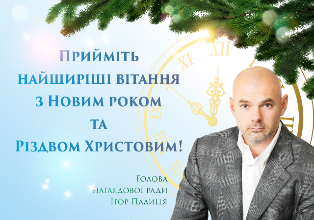 Сердечно вітаю з Новим роком і світлими Різдвяними святами, зичу здоров’я і кохання, сонця і світлих думок, звершення планів і надій, терпіння, оптимізму та незгасної життєвої енергії.