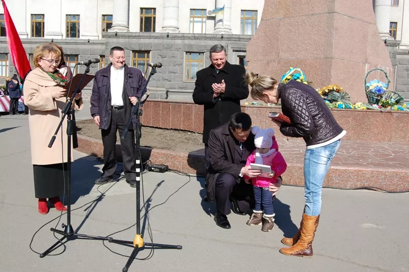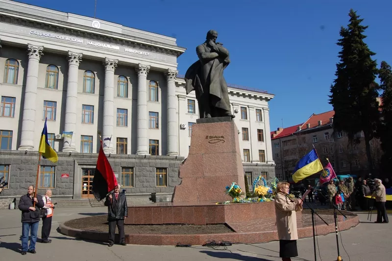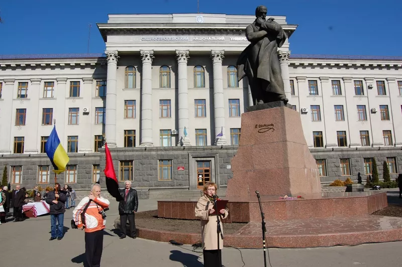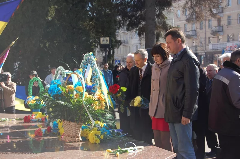 Представники керівництва міста і області, науковці, творча інтеліґенція, а також учасники акції «Мій “Кобзар”» (віднині вона буде щорічною) поклали квіти до підніжжя пам’ятника Тарасові Шевченку.