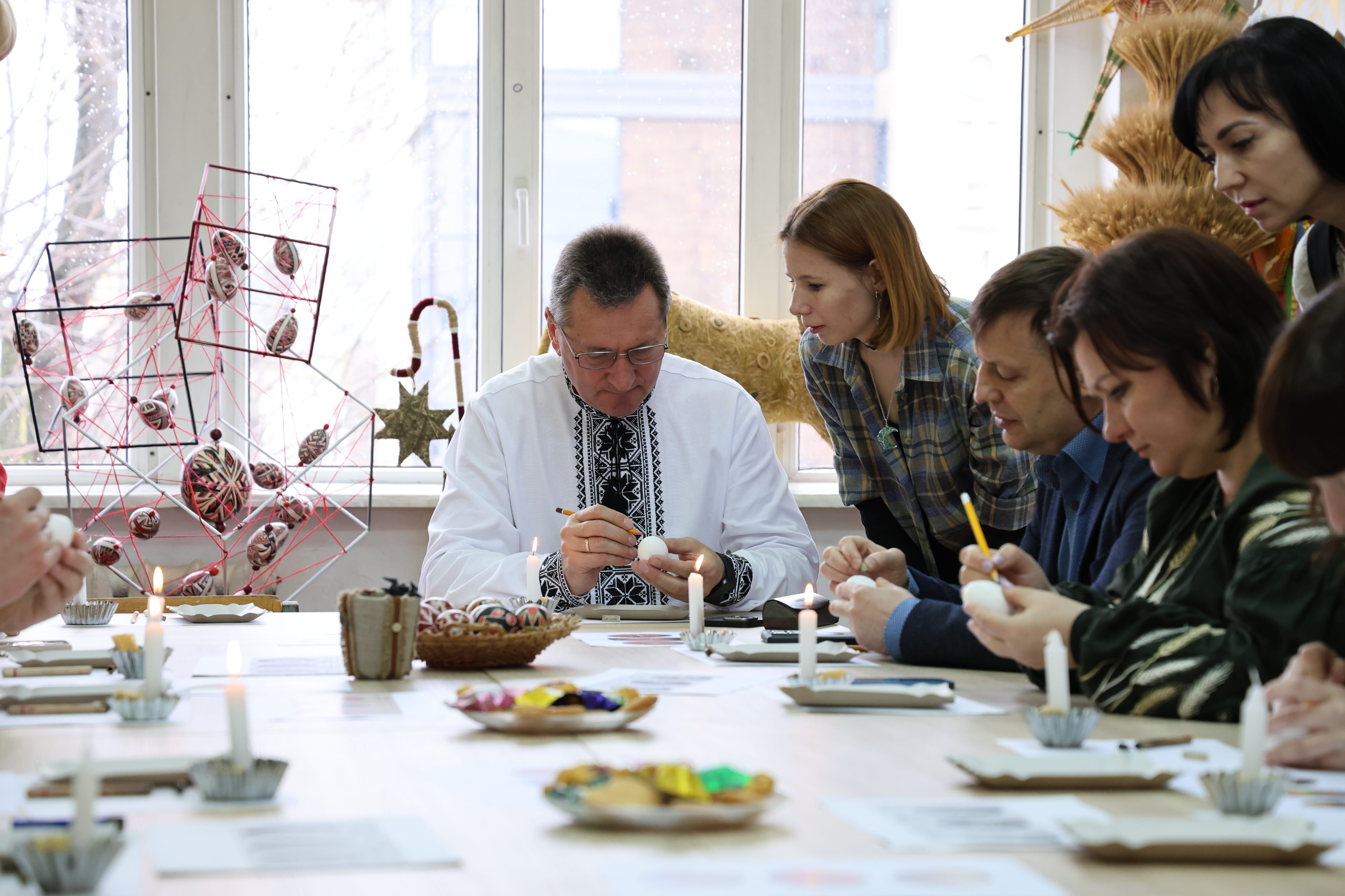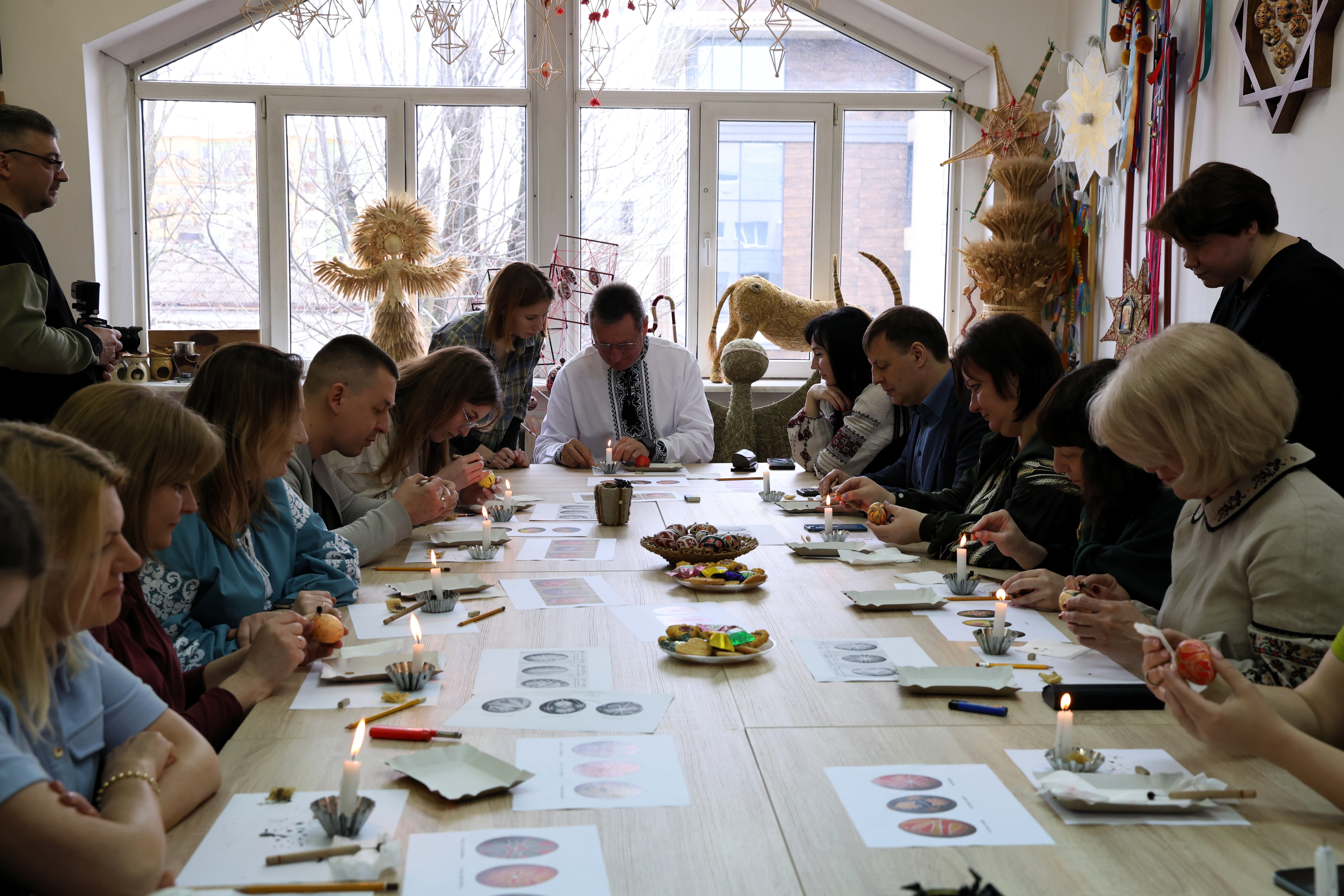 Передвеликоднє дійство об'єднало працівників Університету на чолі із ректором Анатолієм Цьосем. Майстер-клас відбувся під наставництвом старшої викладачки кафедри образотворчого мистецтва Галини Вахрамєєвої. Допомагали учасникам і завідувачка цієї кафедри Тетяна Прокопович та студенти.
