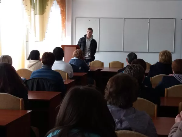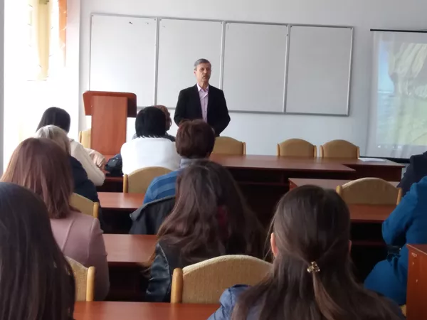 Заступник декана, доцент Сергій Полетило розповів про переваги навчання на нашому факультеті, ознайомив із проведення дня відкритих дверей та вручив буклети для того, щоб учителі розповіли про наш ФІСФМ своїм учням. Професор Олександр Мартинюк розповів про роботу гуртка робототехніки та студентське життя студентів спеціальності «Фізика».