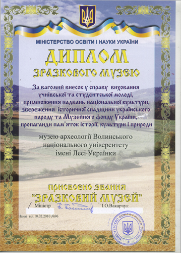 Історія музею. Історія створення музею розпочалась 17 березня 1975 р. зі службового подання доц. Кучинка М. М. Для розміщення експозиції музею була виділена кімната. 9 березня 1977 р. відбулося відкриття музею в тодішньому корпусі історичного факультету по вул. Леніна, 2 (нині пр. Волі). Експозиція розміщувалась на саморобних стелажах, однак оформлена за хронологічним принципом, прийнятим в археології. Матеріалів було тоді обмаль, адже і розкопки проводились лише третій рік. Поступово матеріали накопичувались і експозиція розширювалась. З часом вона вже не поміщалася в одній кімнаті і виникла потреба у додатковому приміщенні.