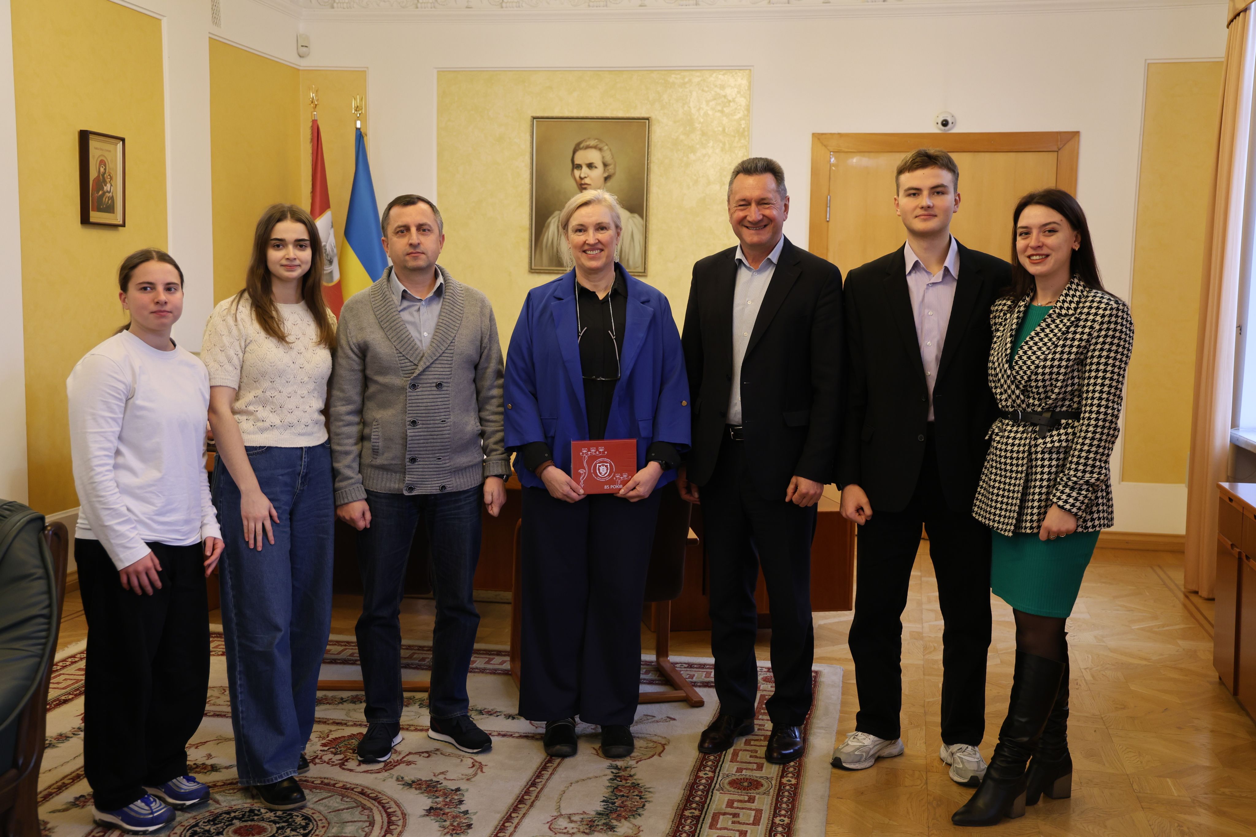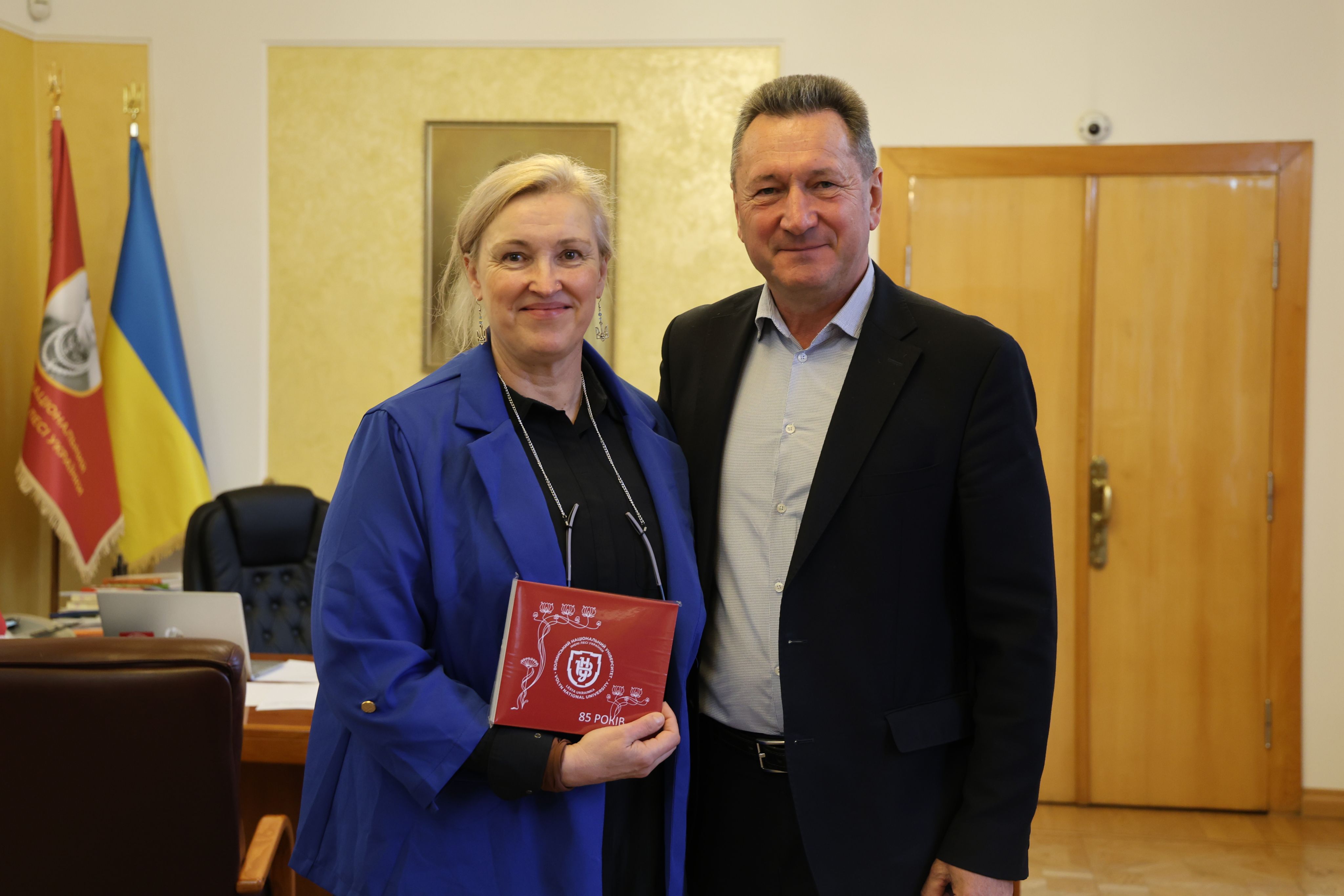 Перед початком циклу лекцій у межах проєкту «Практееезно» – програми інтенсивного стажування для студентів, організованої Християнською медичною асоціацією України, лікарка зустрілася з ректором Університету Анатолієм Цьосем, деканом медичного факультету Ярославом Степанюком та старшою викладачкою кафедри гістології та медичної біології Ольгою Панівською.