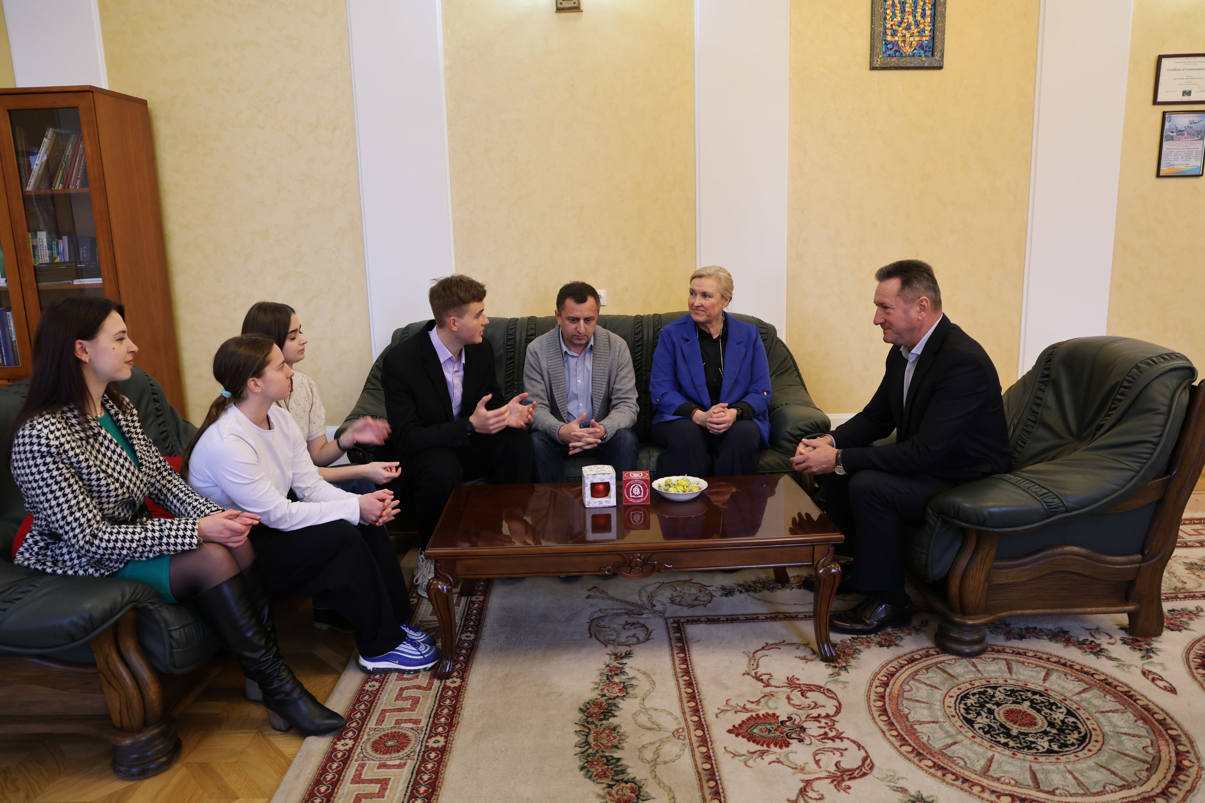 Ректор розповів гості про інфраструктуру університету, особливості навчального процесу та зміни в університетському житті після початку повномасштабної війни. За його словами, сьогодні навчальний заклад приділяє значну увагу соціальній складовій – допомозі військовим і їхнім родинам, дітям загиблих, внутрішньо переміщеним особам.