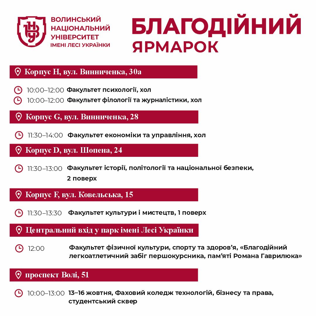 1 жовтня ВНУ імені Лесі Українки проведе благодійний ярмарок до Дня захисників і захисниць України.
