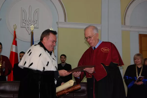Під оплески колег, друзів та студентів Ігор Коцан вручив професорові Даніелю Шеріку атрибути почесного професора Східноєвропейського національного університету імені Лесі Українки.