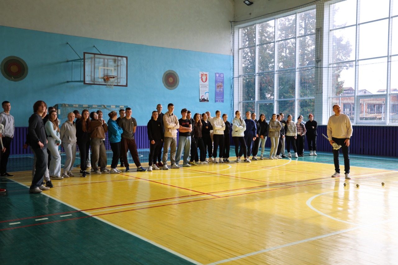 Під час візиту Володимир Демедюк презентував лакрос здобувачам освіти факультету фізичної культури, спорту та здоров’я, розповів про історію та особливості гри, а також подарував спортивний інвентар для подальших тренувань.