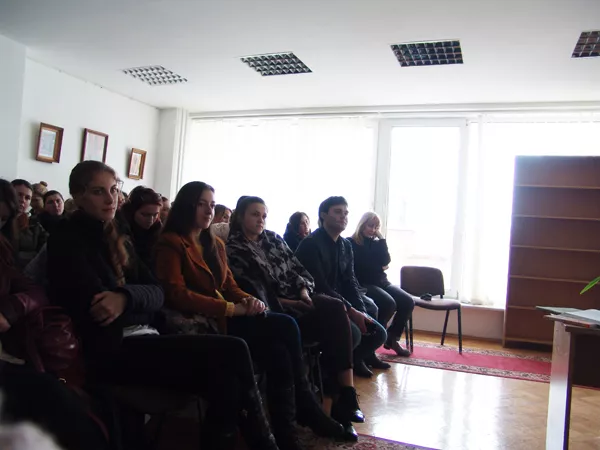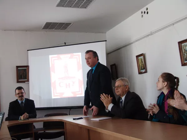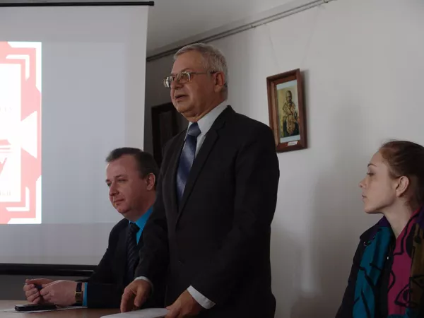Розпочав зустріч голова Української науково-педагогічної спілки «Берегиня» (Республіка Білорусь) Віктор Місіюк, якого присутнім представив декан факультету Юрій Громик та привітав з відзнакою (торік пан Віктор Місіюк отримав від Президента України ювілейну медаль «25 років Незалежності України» за вагомий особистий внесок у зміцнення міжнародного авторитету української держави, популяризацію її історичної спадщини та сучасних надбань). У своєму виступі пан Віктор розповів про життєвий шлях письменника та своє знайомство з творами письменника: «Федір Одрач народився в селі Місятичі (Пінське Заріччя), нині це територія Республіки Білорусь. Тож разом з колегами пробую організовувати заходи з популяризації творчості Федора Одрача. Власне, моє знайомство з постаттю письменника відбулося у 2002 році, коли керівник організації, до якої я колись належав, Микола Козловський перевидав “Наше Полісся”, що поширювалося з рук у руки. Згодом більш повно відкрив собі автора через інші його твори. Знайшли хату, в якій народився Федір Одрач. Він там не жив, бо це був будинок його діда. Варто сказати, що справжнє прізвище письменника Шоломицький. Це один із найбільш закорінених шляхетських родів Пінщині, так звана пінська шляхта, яка залишилася вірною східному обряду. Шоломицькі мали й своє родове гніздо, навіть є таке село Шоломичі, відстань між Місятичами і Шоломичами – близько 10 км».
