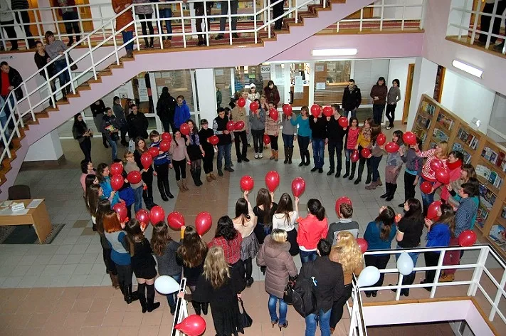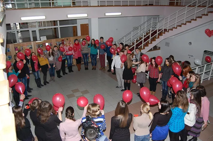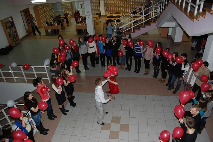До Дня святого Валентина студенти Лесиного університету влаштували святковий флешмоб. У приміщенні бібліотеки навчального закладу юнаки й дівчата з повітряними кульками, тримаючись за руки, утворили серце. А у його центрі під звуки душевної музики кружляла пара.
