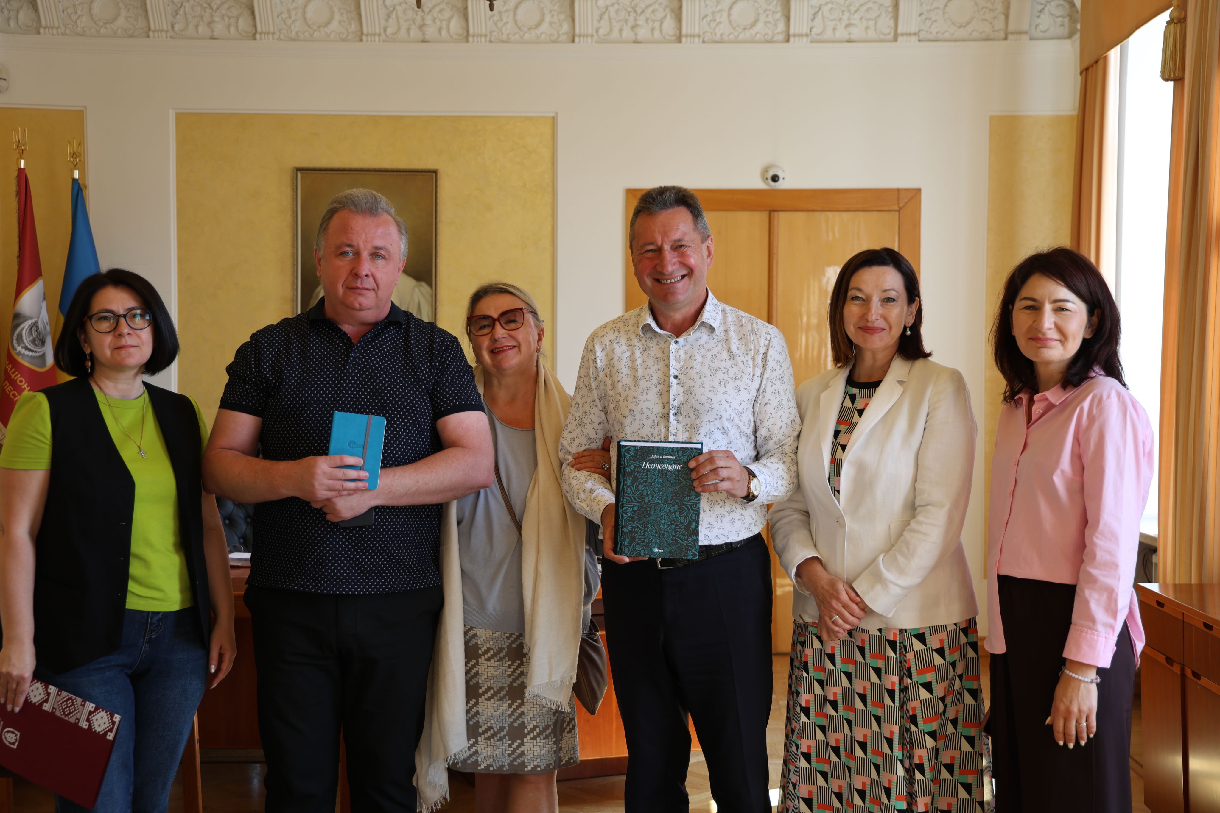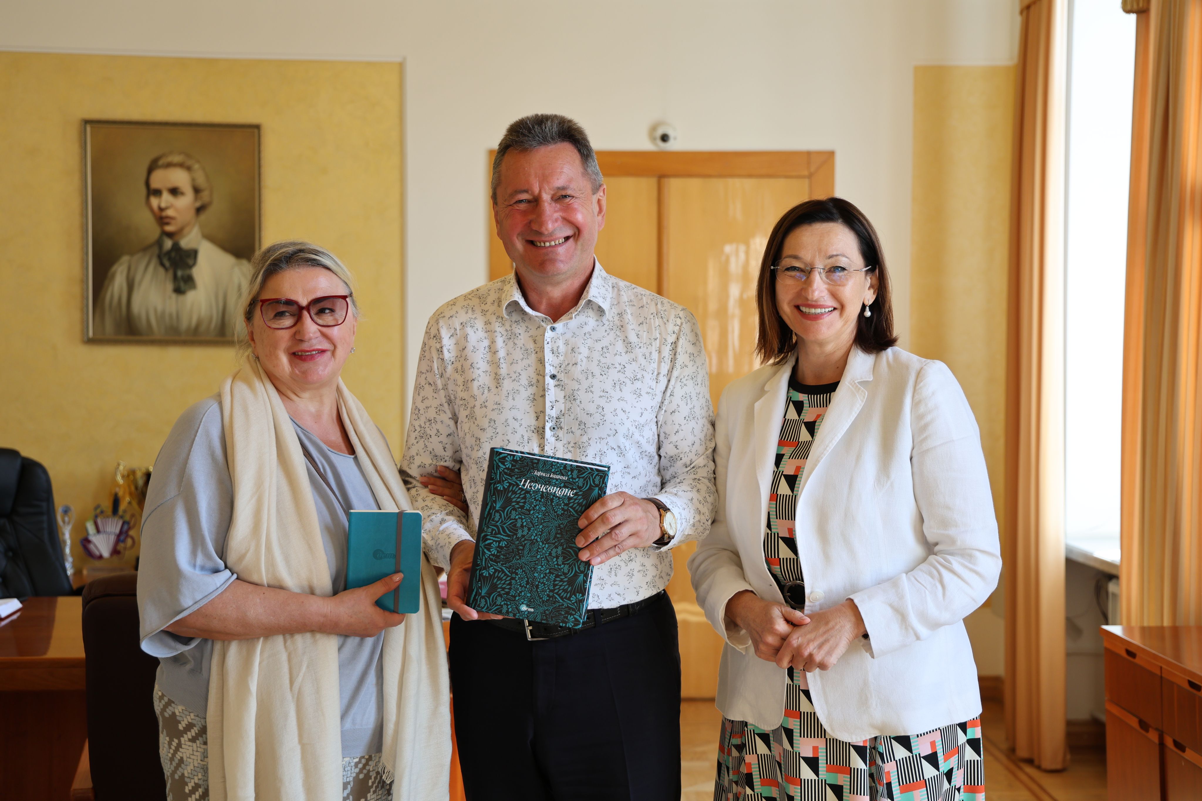 Перед зустріччю зі студентами Лариса Олексіївна завітала до ректора Анатолія Цьося, де вона вручила примірник своєї нової книги «Неочевидне». У діалозі також взяли участь голова Наглядової ради Університету Ірина Констанкевич, проректори Наталія Благовірна та Юрій Громик, помічниця ректора Тетяна Роспопа.