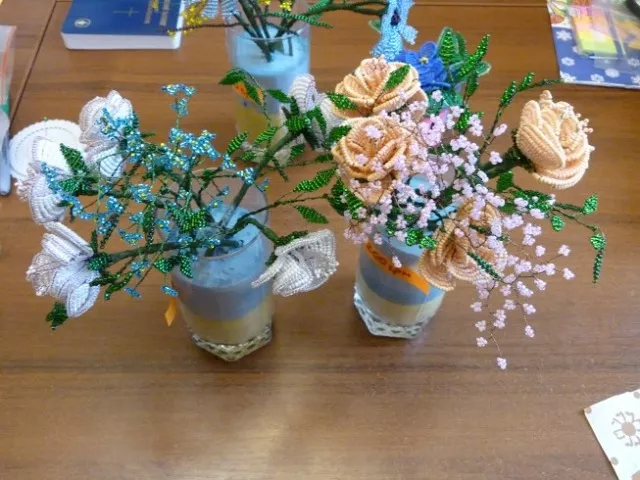 На благодійному аукціоні було представлено багато виробів, виготовлених за народними мотивами. Це і ляльки-мотанки, і чудові мотані кізоньки, і ліплені з солоного тіста ялинкові прикраси, і розписані акриловими фарбами футболки з сонцем та котиком-муркотиком. Не обійшлося і без національної символіки: жовто-блакитні фенічки з ниток муліне та браслети з бісеру, сережки та кулон із полімерної глини, футболка з осучасненим схематичним зображенням щирого українця у вишиванці. Своїми чудовими виробами нас також підтримали переселенці з Криму. Вони надали для аукціону квіти та прикраси з бісеру, плетені дитячі речі, іграшки та магніти із солоного тіста, іграшки з флісу та мозаїчні магнітики.