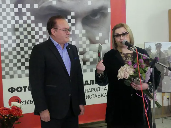 До привітань учасників відкриття виставки вийшли головний редактор газети «День» Лариса Івшина і ректор СНУ імені Лесі Українки Ігор Коцан.