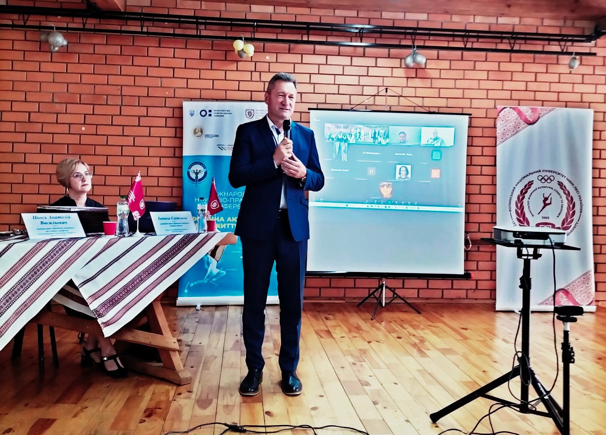 Розпочав конференцію із вітальним словом в.о. ректора професор Анатолій Цьось, який зазначив, що обрана тематика є вдалою на сьогоднішній день, її актуальність є надважливою в сучасних складних умовах, у яких важливо підтримувати фізичну активність, яка допомагає знизити рівень гормону стресу.