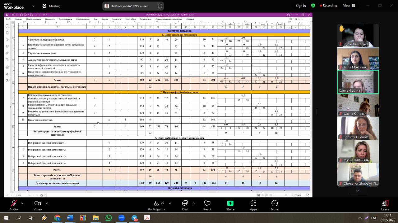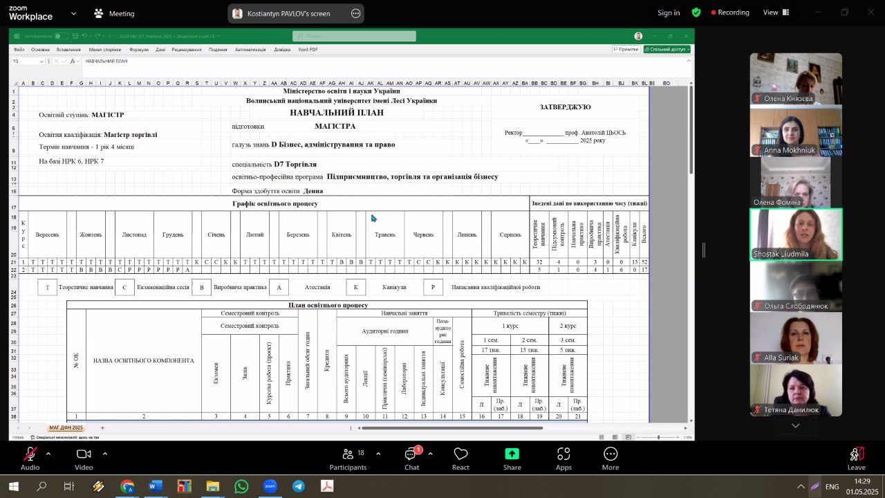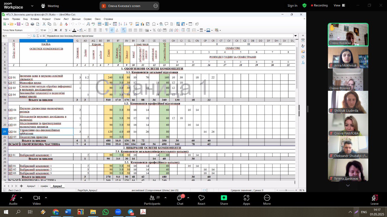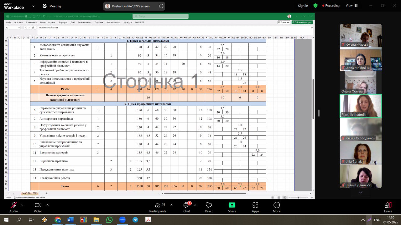 01 травня 2025 року відбулася зустріч, організована кафедрою економіки і торгівлі, щодо обговорення навчальних планів та освітніх програм з академічною спільнотою, провідними експертами НАЗЯВО та науково-педагогічним персоналом, задіяним у реалізації ідентичних або схожих ОП та ОНП у провідних ЗВО України.