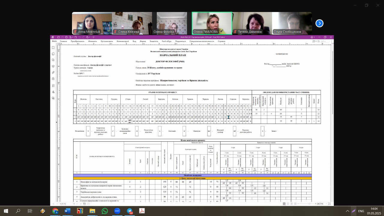 Гарантами ОП і ОНП кафедри економіки і торгівлі першого, другого і третього рівнів освіти презентовано проекти програм, які проходять процедуру громадського обговорення на сайті ВНУ, анкети для внесення пропозицій, а також запропоновано і обговорено можливості співпраці у сфері академічної мобільності здобувачів освіти презентованих програм.