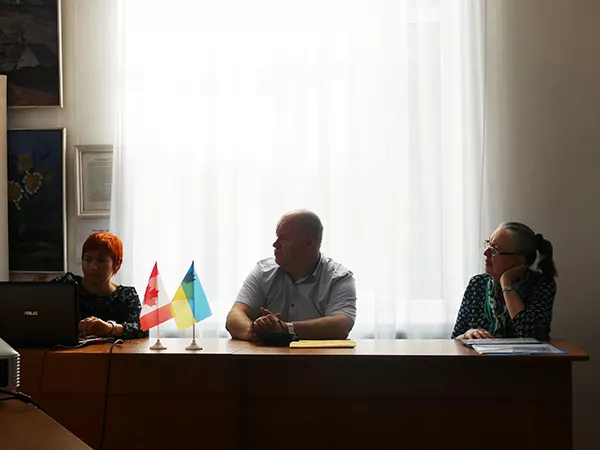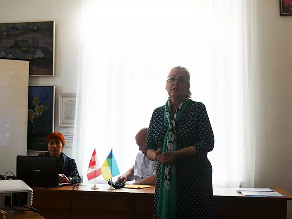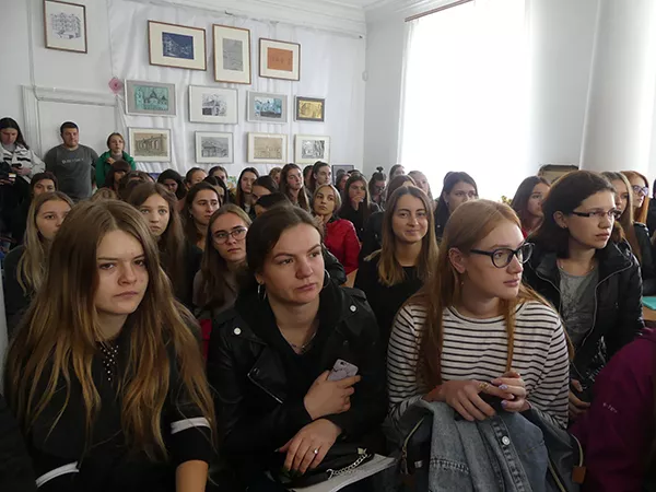 Пані Пейзант прибула до університету разом із Валерієм Полковським, дослідником творчості Джорджа Риги, на запрошення керівниці Центру канадознавства СНУ, доцентки кафедри практики англійської мови Ірини Калиновської.