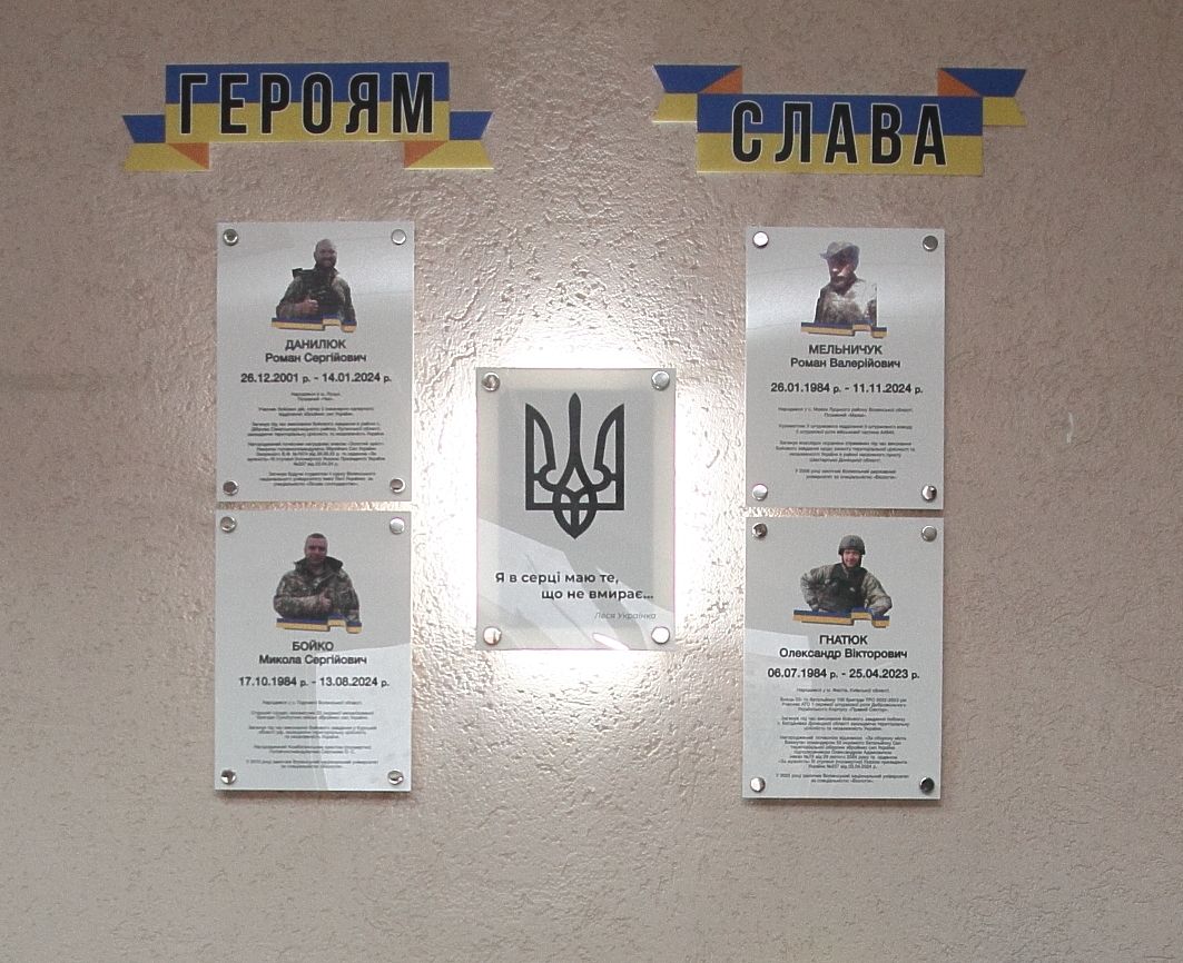 На стінах Університету увіковічнили імена чотирьох воїнів: Романа Мельничука (40 років. Загинув від поранень, отриманих під час виконання бойового завдання в районі Шахтарського Донецької області. Випускник 2006 року за спеціальністю «Біологія»), Олександра Гнатюка (39 років. Загинув під час виконання бойового завдання поблизу Богданівки Донецької області. Випускник 2022 року), Романа Данилюка (22 роки. Загинув під час виконання бойового завдання біля села Діброва на Луганщині. Студент ІV курсу спеціальності «Лісове господарство»), Миколи Бойка (40 років. Загинув у Курській області під час виконання бойового завдання. Випускник 2010 року за спеціальністю «Біологія»).