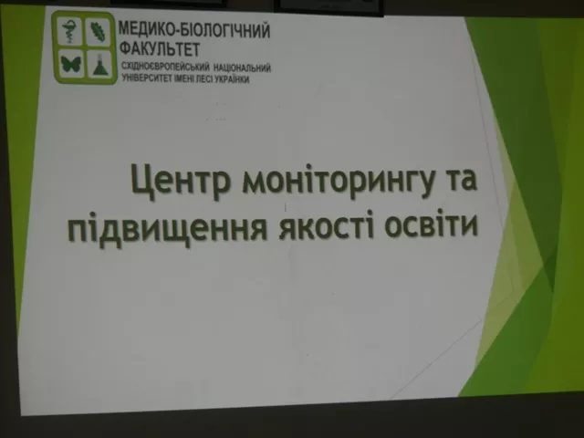 У рамках тижня медико-біологічного факультету відбулися презентації проєкту «Навчай і навчайся якісно» та Центру моніторингу та підвищення якості освіти. Проєкт реалізують у межах Стратегічного практикуму для керівників ЗВО (організатори – Києво-Могилянська академія, ГО «Вище», Саксонський центр викладання та навчання вищої освіти в Лейпцигу (Німеччина), Міністерство освіти і науки України, Національне агентство із забезпечення якості вищої освіти).