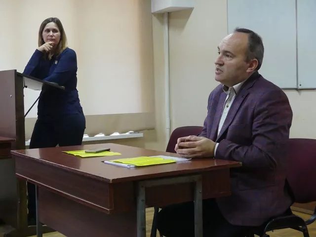 Крім того, ішлося про структуру акредитації та нововведення цього процесу. Присутні викладачі активно включились у розмову про втілення самого Центру в життя – мовляв, чи не будуть даватися вказівки про опитування «згори». А в системі оцінювання їх бентежить такий момент, що студенти ставлять високі бали тим викладачам, які менше вимагають, або ж тим, які викладають менш складні предмети. Тема критеріїв оцінювання якості освітньої програми викликала найбільш бурхливу дискусію.