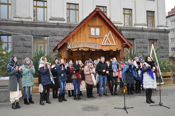Гарну традицію, яку започаткували у Лесиному виші торік – фестиваль «Різдвяний вертеп» – продовжено. Площа, перед головним корпусом університету, увінчана соснами та ялинами, прикрашена новорічними іграшками, гірляндами та святковою ілюмінацією. А головним символом свята, звісно, є різдвяна шопка, що зображає вифлеємську стайню у ніч Різдва Христового. Шопка, що всередині застелена сіном, наповнена обов’язковими елементами – фігурками Ісуса Христа, Матері Божої – Діви Марії та святого Йосипа. Тут ви побачите й інших персонажів та атрибути Різдва. Усе в очікуванні свята. І воно прийшло…