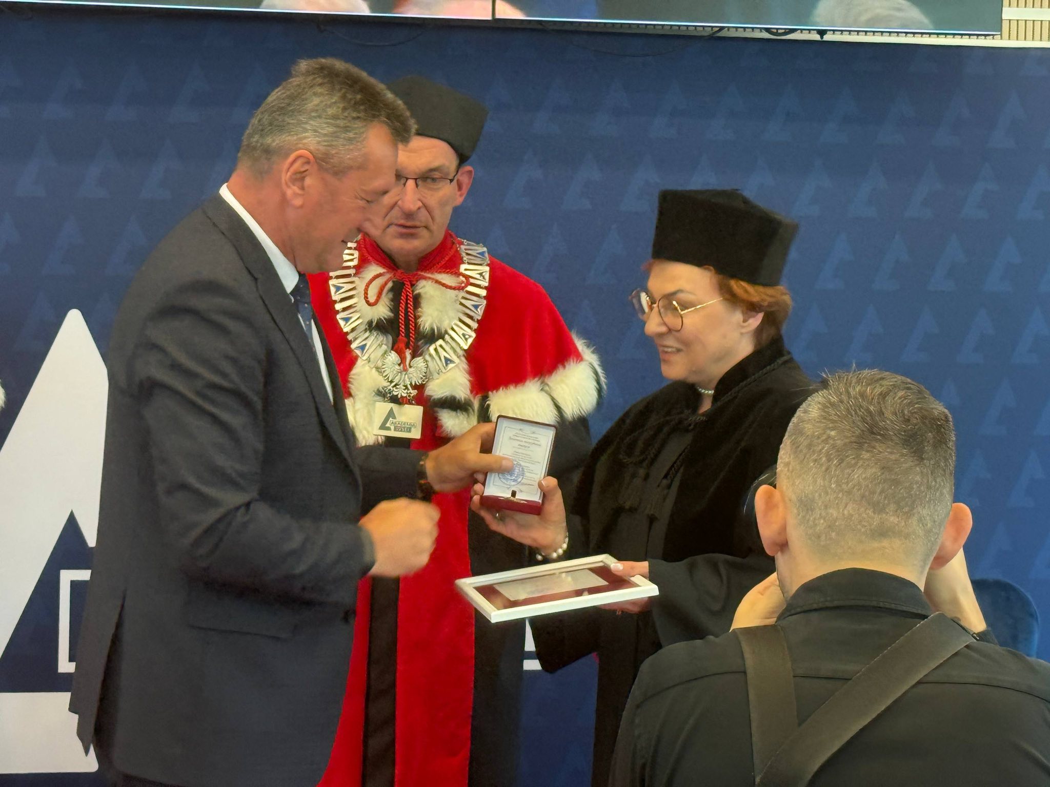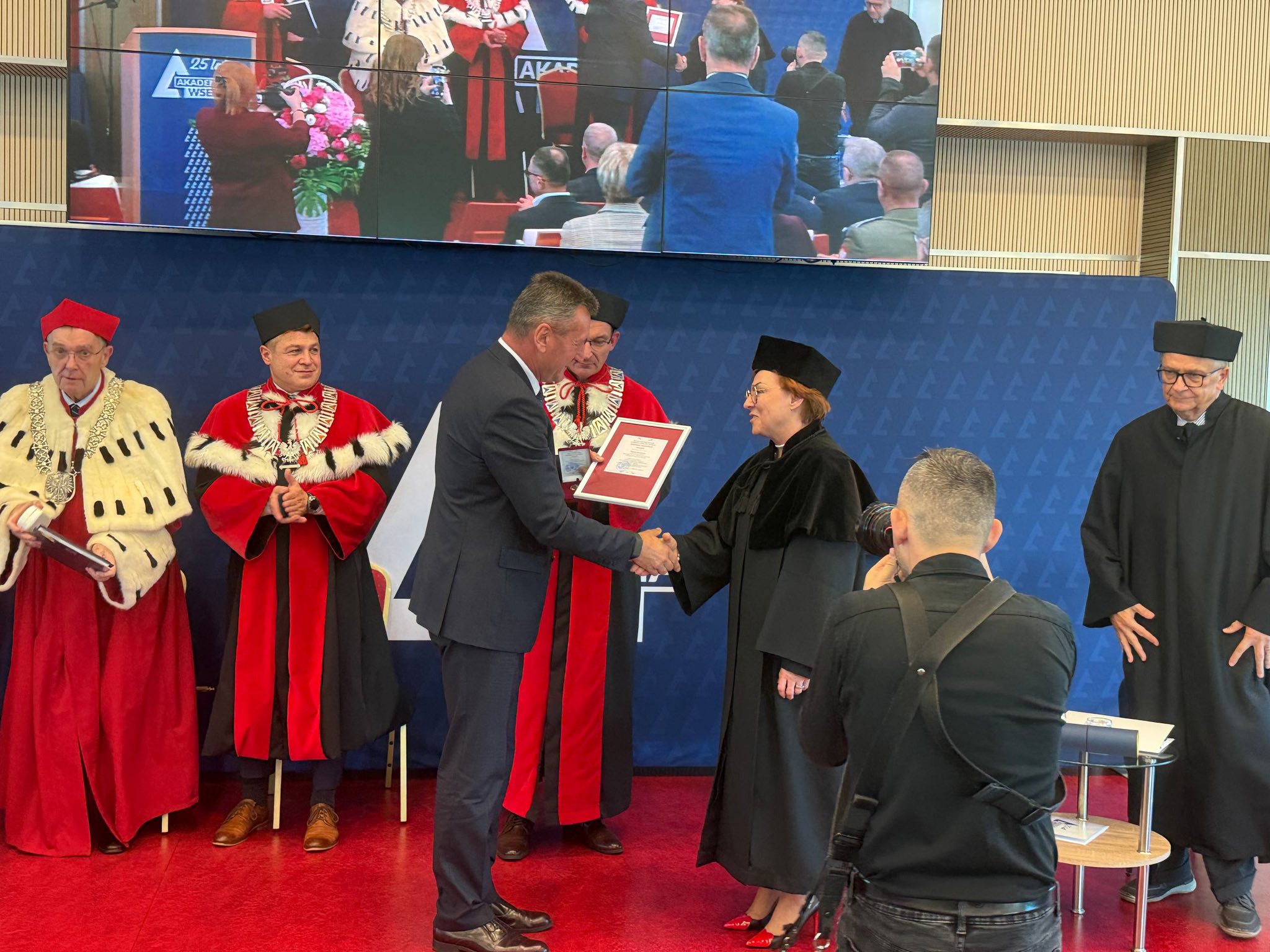 Ректор ВНУ імені Лесі Українки Анатолій Цьось вручив найвищу нагороду Університету «Золотий нагрудний знак Лесі Українки» засновниці та президенту Люблінської академії «Вища школа економіки та інновацій» Терезі Богацькій.