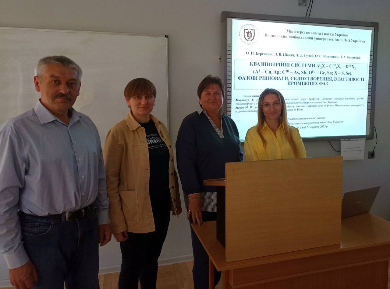 У межах заходу було презентовано монографію «Квазіпотрійні системи AI2X – CIII2X3 – DIVX2 (AI – Cu, Ag; CIII – As, Sb; DIV – Ge, Sn; X – S, Se): фазові рівноваги, склоутворення, властивості проміжних фаз». Авторський колектив - О.П. Березнюк, Л.В. Піскач, Л.Д. Гулай, О.С. Климович та І.А. Іващенко представив результати багаторічних комплексних досліджень, присвячених вивченню фазових діаграм і властивостей халькогенідних матеріалів.