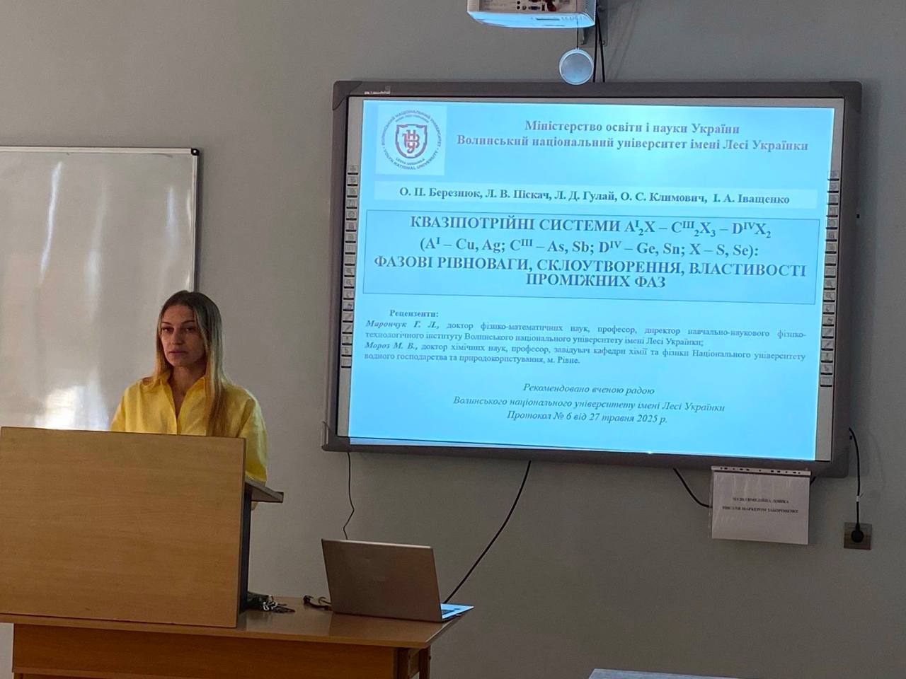 12 червня 2025 року на кафедрі неорганічної та фізичної хімії Волинського національного університету імені Лесі Українки відбулося засідання хімічної секції Волинського відділення Наукового товариства імені Шевченка.
