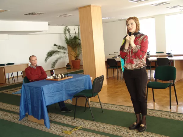 На початку презентації Ольга відзначила цікавий парадокс: вступала вона до Волинського державного університету імені Лесі Українки, закінчувала національний, а презентує свою дебютну книжку у Східноєвропейському (мовляв, «усе тече, все змінюється»). Після короткого вступного слова мисткині й розпочалося дійство за творами О. Антош, де любов, вірність, зрада, біль утрат і поклик надії з’єдналося у своєрідну мозаїку, осягнути суть якої слухачам допомагали як авторка, так і актори театру літературних презентацій «Вперше» (керівник – Наталка Максимчук) – Ольга Трохачьова (sic!), Дарина Кухарук, Юрій Дмитрук (до речі, ще й бард), Олександр Горбачевський (за сумісництвом – молодий прозаїк). Центральною декорацією був стіл, на якому стояла шахова дошка з розставленими для гри фігурами. Зрозуміло, що як рушниця, котра висить на стіні в першій дії, за законами драматургії, повинна у третій вистрілити, так і в партію в шахи хтось мусить зіграти. Зрештою, так і сталося, викликавши асоціації з рядками Омара Хайяма: