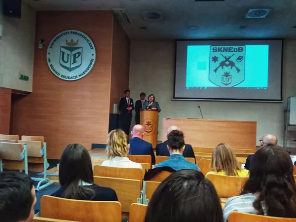 У квітні на базі Інституту наук про безпеку Педагогічного університету імені Народної освітньої комісії в місті Краків (Республіка Польща) відбулася VI Міжнародна наукова конференція «Обличчя безпеки: минуле, сьогодення, майбутнє», учасниками якої стали студенти факультету міжнародних відносин Східноєвропейського національного університету імені Лесі Українки Назарій Шуляк і Дарина Мельник.