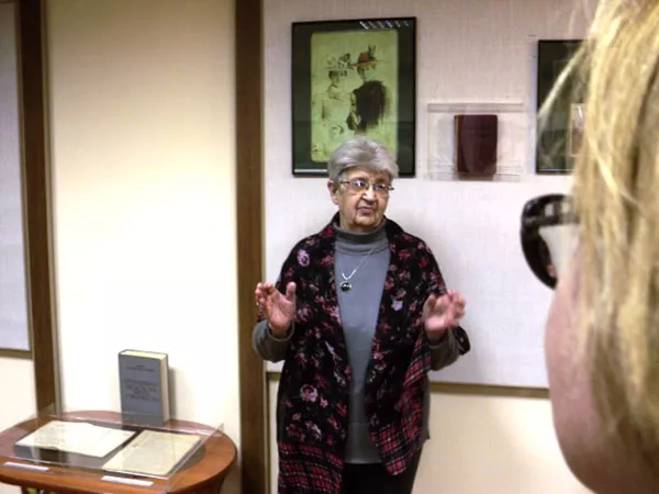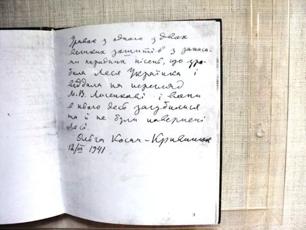 Посередником у «побаченні з Лелією», звісно, була Тетяна Ярославівна. Докладно, як це вона вміє, розповіла про кожен експонат, представлений на експозиції (аркуш із гербарію із троян-зіллям, рукописний зошит із почерком Лесі та Лілі, згаданий уже авторизований машинопис хронології, наперсток Ольги Петрівни, її дослідження українських народних візерунків, пісень тощо).