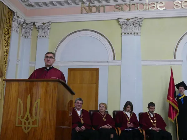 Після офіційної церемонії вручення ректор Університету Кардинала Стефана Вишинського у Варшаві Станіслав Дзєконський виголосив промову «Гідність людської особистості до джерел виховання», на початку якої подякував за відзнаку.