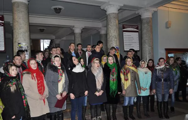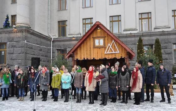 Ведучий заходу – директор центру культури і дозвілля університету, відомий композитор і співак Сергій Скулинець, – запросив до мікрофонів майстрів мистецтв вишу – народний ансамбль пісні і танцю факультету мистецтв «Розмай», ансамбль духових інструментів цього ж факультету, та колектив студентів факультету соціальних наук, у виконанні яких прозвучали українські народні колядки, щедрівки, інші популярні мелодії. Лейтмотивом віншувань, було побажання, щоб Святий Миколай приніс в Україну довгоочікуваний мир.