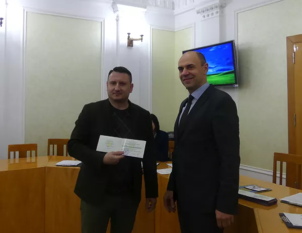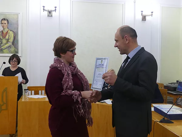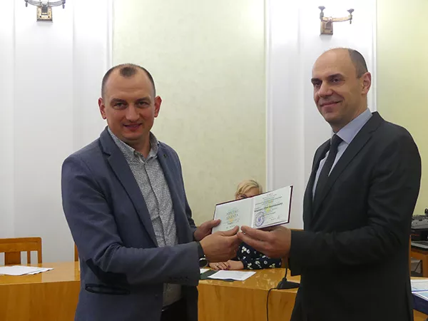 Розпочалося засідання з урочистого вручення атестатів професора та доцента працівникам університету. Зокрема, в. о. ректора вишу, доцент Сергій Федонюк привітав і вручив атестати таким викладачам: