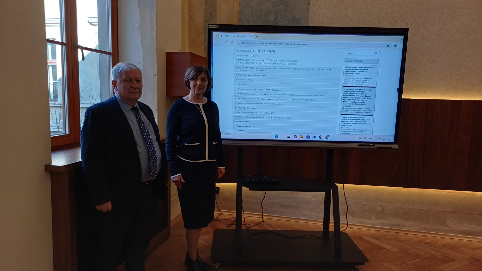 14 листопада 2025 року в межах міжуніверситетської співпраці із Львівським національним університетом імені Івана Франка відбулася зустріч представників групи забезпечення ОПП «Середня освіта. Географія» першого (бакалаврського) рівня вищої освіти Волинського національного університету імені Лесі Українки (доц. Ткачук Н. М., доц. Стельмах В.Ю.) та представників академічної спільноти географічного факультету ЛНУ імені Івана Франка (доц. Біланюк В. І., декан факультету, Котик Л. І, заступник декана з навчально-методичної роботи, проф. Дністрянський М.С.).