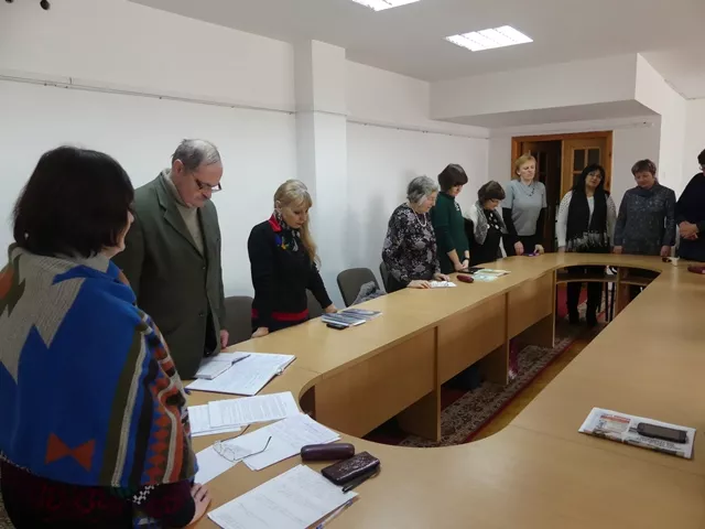 Позаяк цей день в області оголошено днем жалоби, засідання розпочалося з хвилини мовчання, якою присутні на чолі з ведучою – методисткою бібліотеки, композиторкою, співачкою, акторкою Світланою Кресак вшанували пам’ять загиблих на сході України вояків-волинян Сергія Сироти й Андрія Войтовича.