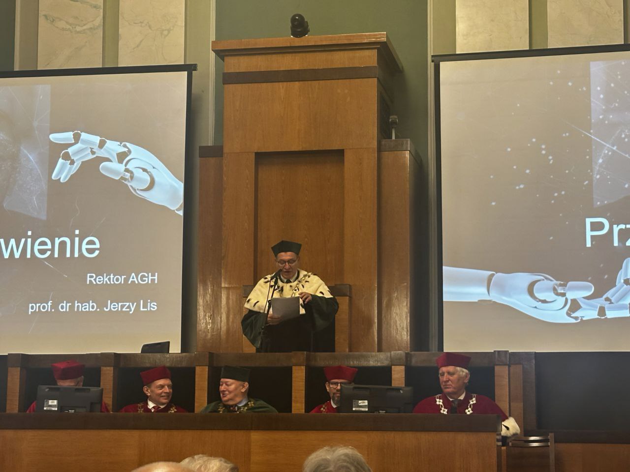 Традиційно дійство розпочалося зі слів ректора, рrof., dr hab. inż. Jerzy Lisa, декана факультету менеджменту, dr hab. inż. Mareka Dudeka й інших поважних гостей заходу, яких запросили на урочистості.