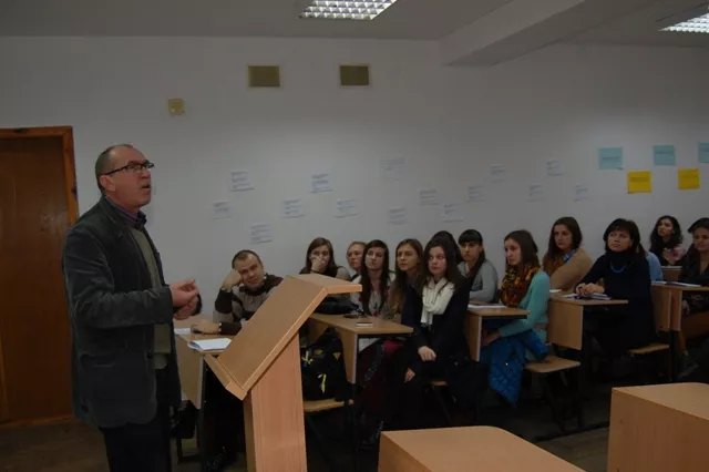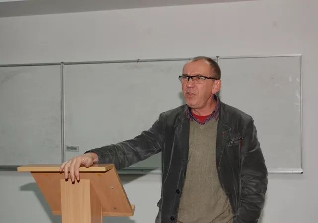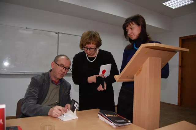 Розпочалася розмова з перекладів польських п’єс. Чому обрано саме твори Януша Гловацького? Популярність і ще раз популярність: п’єси Я. Гловацького йдуть на Бродвеї (Нью-Йорк, США), в Києві в Молодому театрі (зокрема, вистава «Четверта сестра»). Присутні почули уривки з п’єси «Попелюха» (дії відбуваються у виправному закладі для дівчат). Пан Олександр пишається цим перекладом, адже він не просто перекладав, а й навіть творив власне український тюремний сленг (бо ж досі злочинці використовують російський). Читання п’єс було артистичне, жартівливо-іронічне, за що молодь віддячувала гостю уважним слуханням, сміхом і бурхливими оплесками.