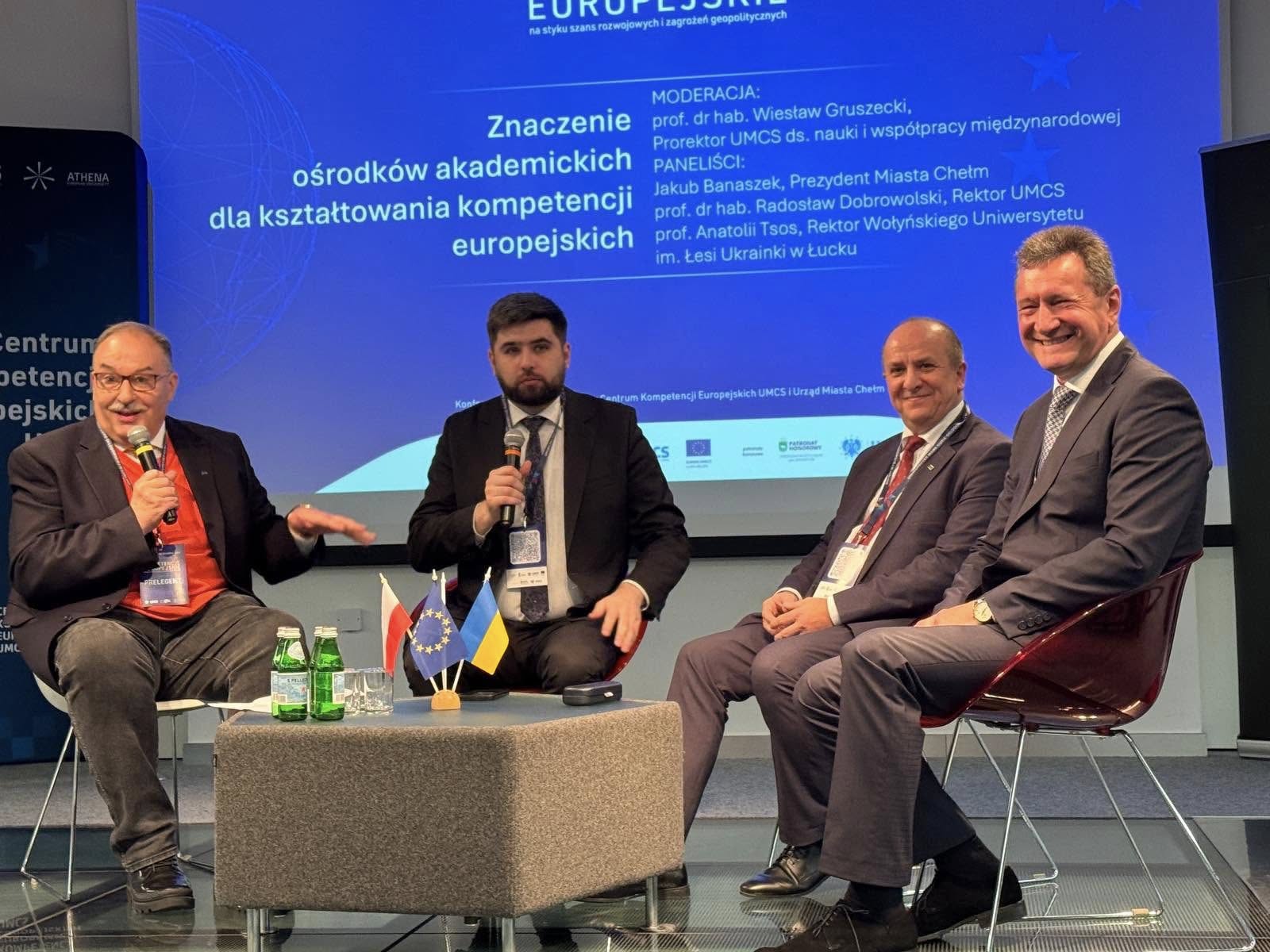 Ректор Волинського національного університету імені Лесі Українки Анатолій Цьось разом з мером міста Хелма Якубом Банашеком та ректором Університету Марії Кюрі-Склодовської професором Радославом Добровольським взяли участь у дискусійній панелі «Значення академічних осередків для формування європейських компетентностей».