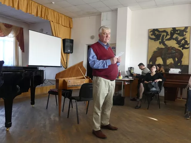 Знану педагогиню, мисткиню та вчену представили присутнім кандидат мистецтвознавства, доцент, завідувач кафедри музично-практичної підготовки, член Національної спілки композиторів України Петро Шиманський та старший викладач цієї кафедри Наталія Никитюк (вона ж була модератором майстер-класу).