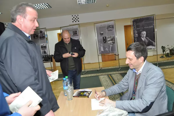 Ясна річ не обійшлося без запитань, які стосувалися не лише книги, а й особливостей нашого суспільного і політичного життя. На них пан Віталій відповідав упевнено й теж не без гумору.