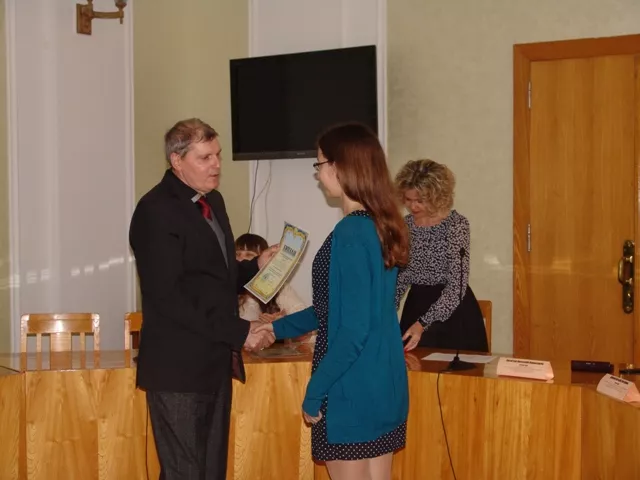 Отже, перше місце посіла студентка СНУ імені Лесі Українки Олена Химка, друге – студент НУ «Львівська політехніка» Михайло Мінченко, третє – Дар’я Пилипенко із КНУ імені Т. Шевченка та Тамара Чунакова з Одеського національного університету ім. І. І. Мечникова. Усі вони отримали презентаційні книги вишу, наукові видання кафедри прикладної лінгвістики, луцькі сувеніри. «Золотим» і «срібним» призерам також вручили сертифікати на тижневий відпочинок на базі практик табору «Гарт» (оз. Світязь).