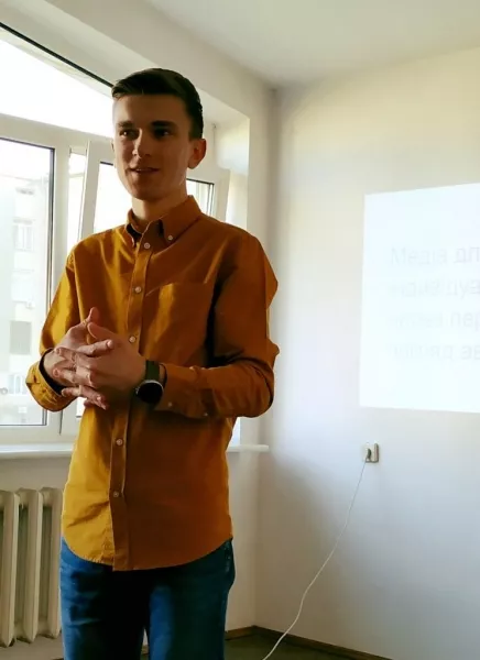 «Все просто – бери і роби», – актуальна теза спікера. Ведучий порадив майбутнім колегам не боятися, враховувати досвід попередників, але не копіювати, а творити щось своє, писати легкі та прості тексти без зарозумілих слів.