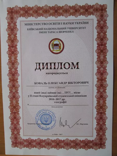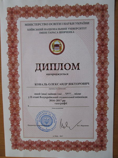 Студент університету – призер ІІ етапу Всеукраїнської олімпіади з географії