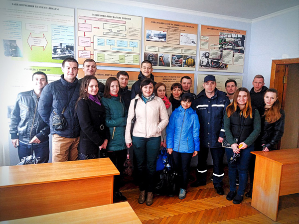 Студенти відвідали частину спеціальної пожежної техніки, що розміщена в Луцьку на вул. Грибоєдова, 1. Начальник частини спеціальної пожежної техніки, майор служби цивільного захисту ДСНС України у Волинській області Мирослав Пастух розповів історію створення частини, ознайомив студентів із технікою, засобами захисту й роботою пожежників, також показав клас, де вони навчаються, продемонстрував систему оповіщення та як за лічені секунди пожежники вирушають на місце пожежі.