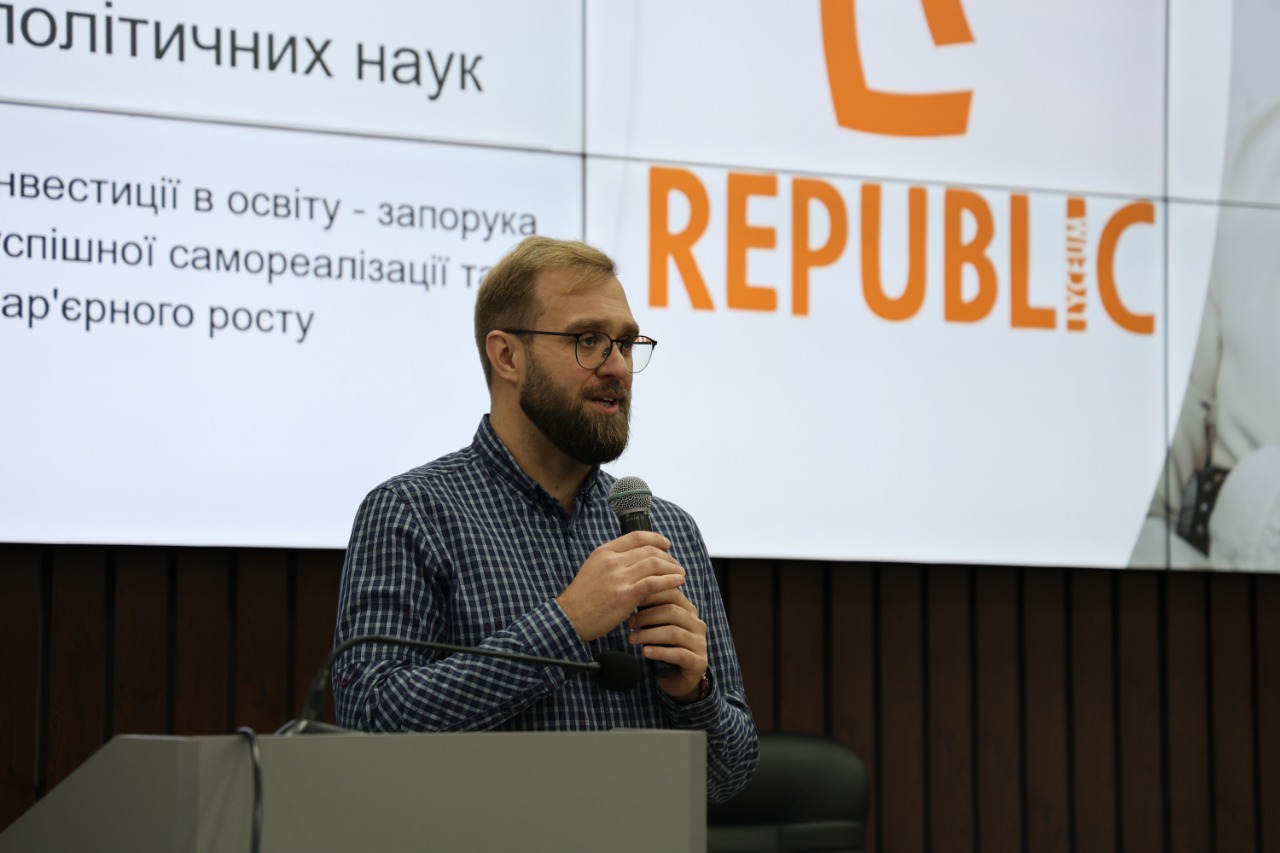 11 листопада 2025 року у Волинському національному університеті імені Лесі Українки в межах Форуму кар’єри зі студентами поспілкувався Назар Михалюк – засновник приватного ліцею «Республіка», кандидат політичних наук. Свою лекцію він присвятив темі інвестицій в освіту як запоруці успішної самореалізації та можливості кар’єрного зростання.